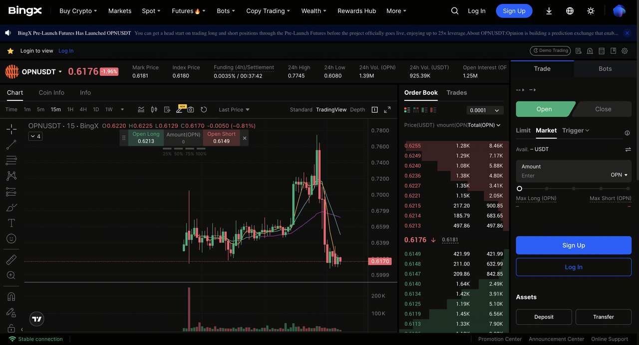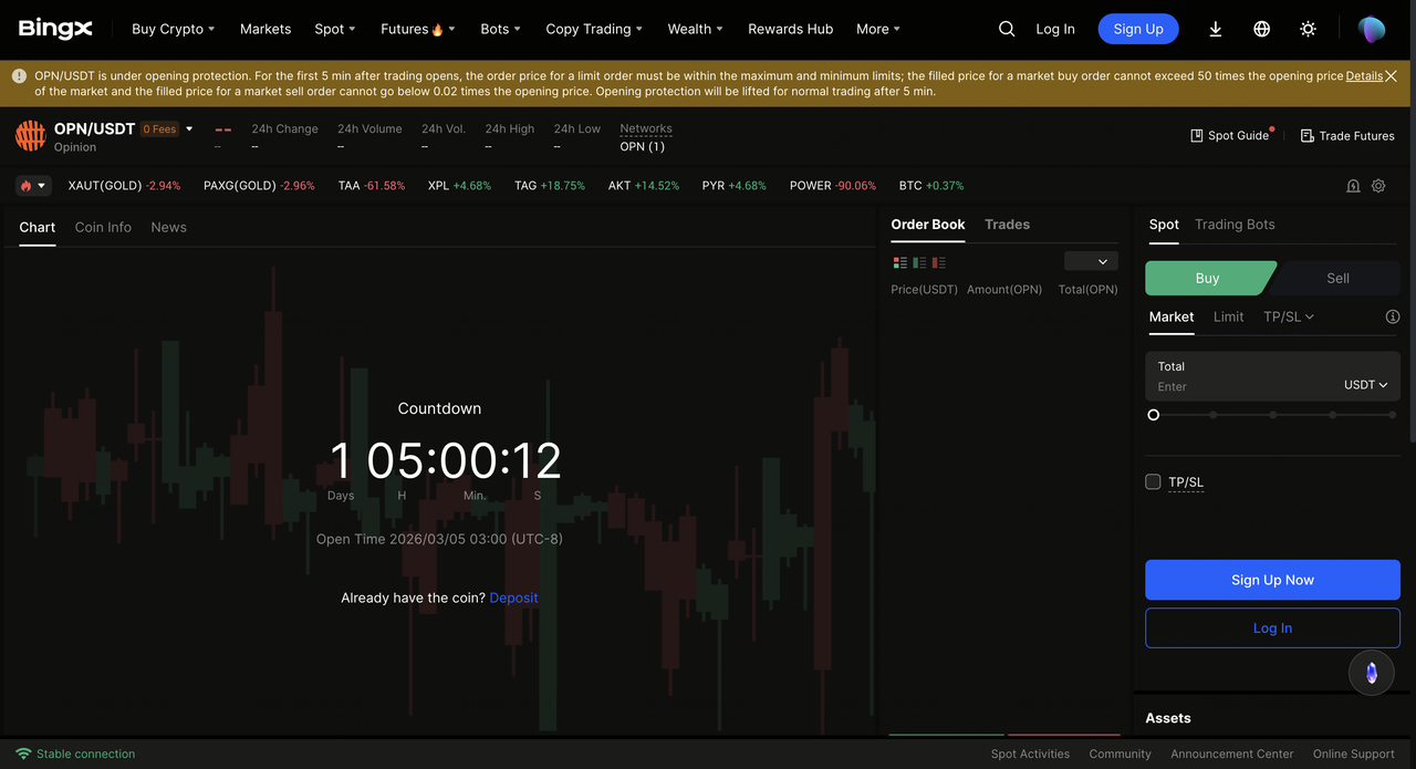 For traders seeking direct exposure to OPN's narrative-driven price movements, the BingX Spot market provides a transparent, order-book-based entry point: