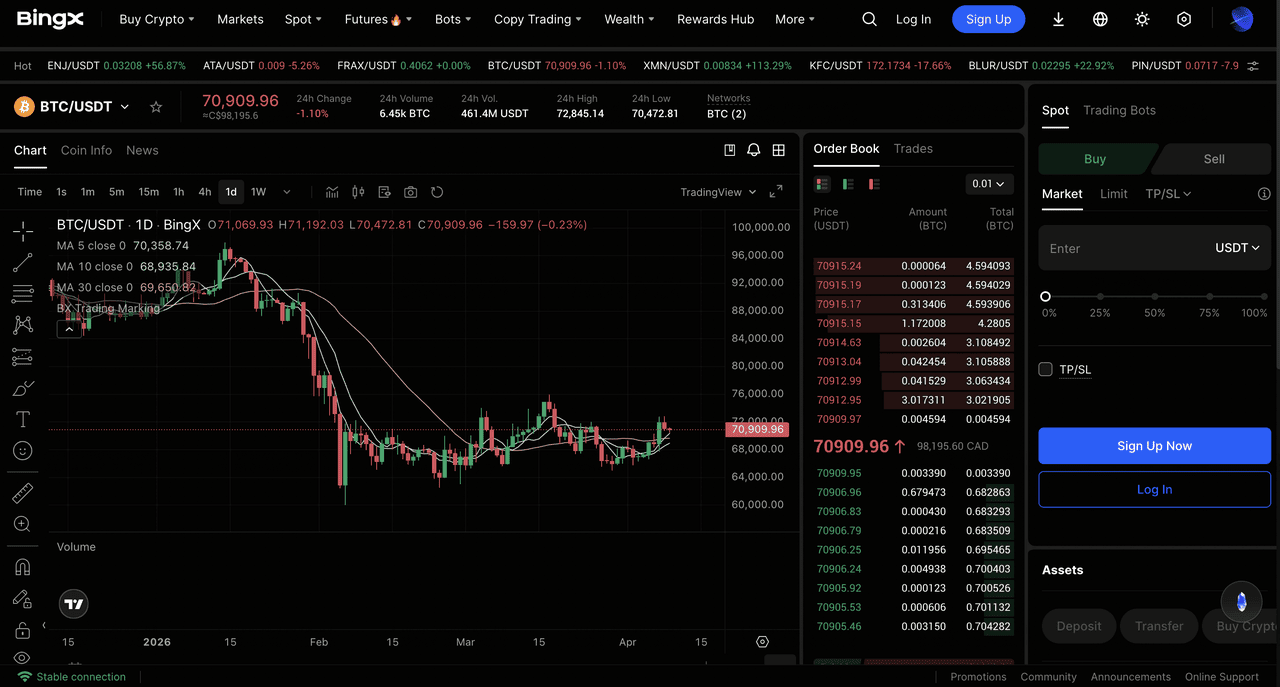 BingX stands as the premier low-latency solution for algorithmic Bitcoin trading in 2026. It delivers sub-50ms WebSocket streams with incremental depth updates every 100ms and full snapshots on demand. The platform supports over 1,000 trading pairs across spot and perpetual futures, backed by deep liquidity pools and generous rate limits reaching 2,000 requests per 10 seconds.