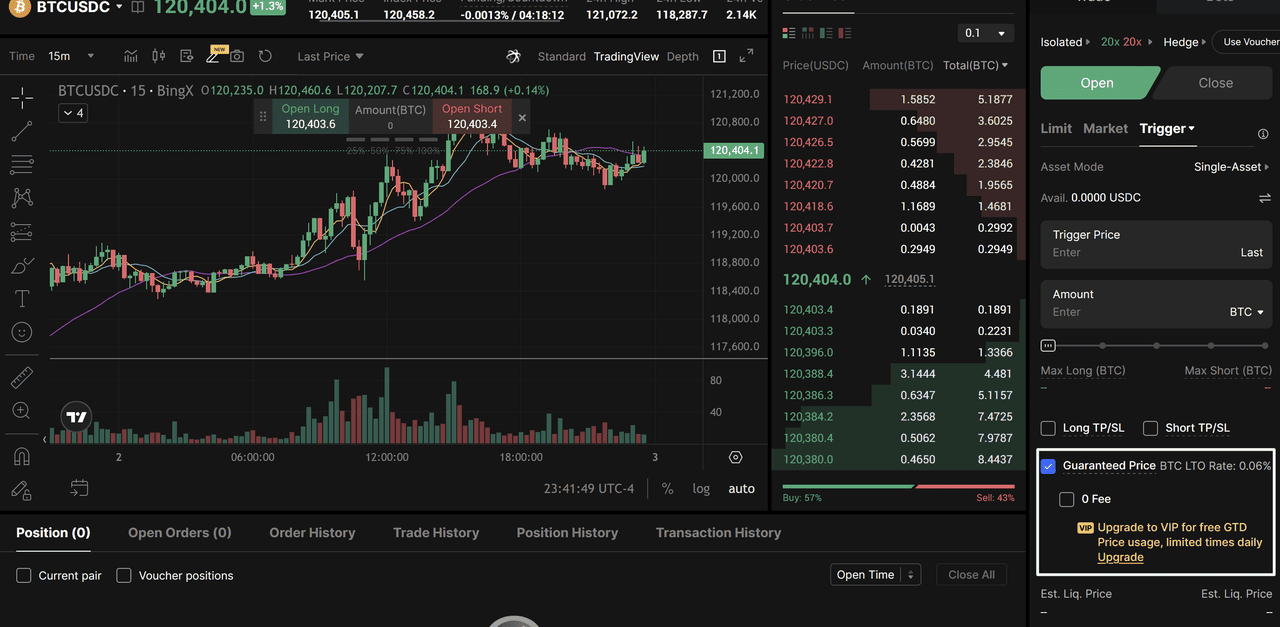 BingX takes execution control further with its Guaranteed Price (GTD) feature, exclusive to Perpetual Futures. GTD ensures that your Trigger Orders and Stop Losses always execute at your preset price, even if the market gaps violently. This eliminates slippage altogether, a feature that most exchanges can’t offer.
